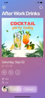 Loopa is a local social app that lets you send invites for private events to all (or a selection) of your friends. Invitees can RSVP on a first come first serve basis until all spots are filled. Those who join are part of a dedicated group chat.