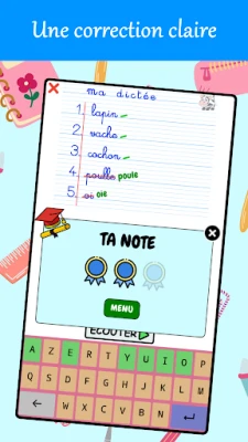 L'application est très ludique et permet de progresser en s'amusant. La voix de la maîtresse d'école dicte les mots et l'enfant les épelle au clavier.