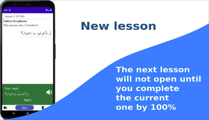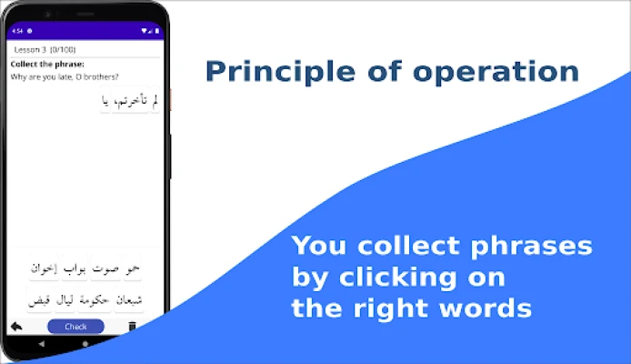 The essence of the whole application is that you need to collect phrases in Arabic. With us you will learn Arabic in a short time step by step.