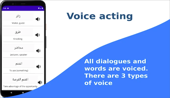 The app has three voice options. Two male and one female. Because of this, it is ideal for learn Arabic language for sisters or children.