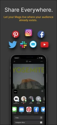 Media constraints, low resolution content and the stress of your followers is a thing of the past. Create a Mag full of any and all content that is needed to share the WHOLE story. Bring your Mag to your audience by sharing a single URL wherever a link can be pasted or shared.