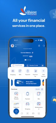 -Virtual Visa Card: Create and manage Visa cards in dollars or Yemeni riyals, with purchase history and reports.