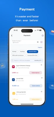 Advanced Options: View line type, balance, shared packages, search, filter, and add packages to favorites.