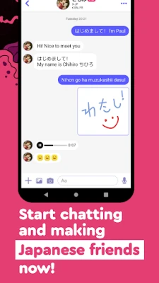 Sesli ve görüntülü mesajlar kullanarak ana dili Japonca olan kişilerle sohbet ederek telaffuzunuzu mükemmelleştirin!