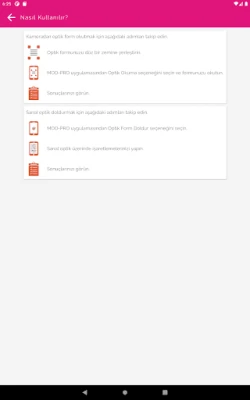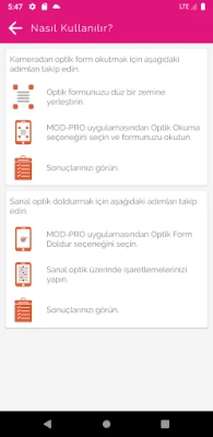 ■ Optik formunuzu düz bir zemine koyun. ■ Mobil Optik Değerlendirme uygulaması MOD-PRO'yu açın. Formunuzu okutun. ■ Sonuçlarınızı anında görün.