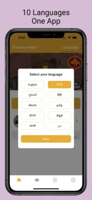 • This bio data app supports 3 languages -Marathi (मराठी ), Hindi(हिंदी ) & English