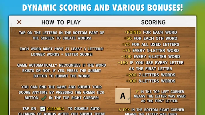 • Customize your gameplay with the auto-clearing option, enabling faster word creation.