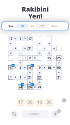 - Hızlı Çözüm Düelloları: Matematik Hünerlerini Göster - Her saniyenin önemli olduğu hızlı bir oyuna adım at. Becerilerini sınamak için diğer oyuncularla peş peşe matematik bulmacaları çözerek mücadele et. Matematik çapraz bulmacalarını en hızlı ve en doğru şekilde çözerek rakiplerinle yarış. Hızlı ol, baskı altında akıllıca düşün.