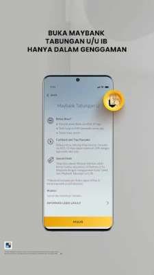 • Open a Maybank Savings account anytime, anywhere, including Sharia products.