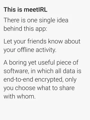 Version 1 comes with end-to-end encryption, public & private event creation and grouping of friends.