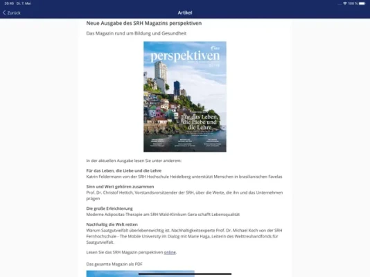 Mitarbeitern der SRH stehen weiterführende Informationen und Funktionen zur Verfügung, um die standortübergreifende Zusammenarbeit zu fördern und die Mitarbeiterbindung zu stärken.