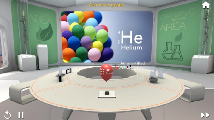 MEL VR Science simulations also has lessons, labs, and simulations covering isotopes, electrons, ions,the periodic table, molecular formulas, isomers, electrostatics and much more.