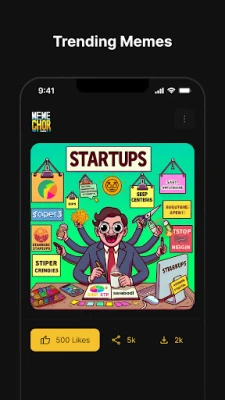 Meme Chor isn't just about creating memes; it's also a fun browsing experience! Check out the 'Latest' and 'Trending' meme sections, where you can scroll through, like, and download memes for personal use.