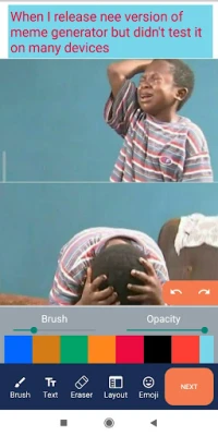 Meme Generator - Popular and daily new blank meme templates, Add/Rotate Text Anywhere, change text size, Stickers, Emojis or Custom Layers, Doodle/Draw, Layout function, Choose Colors! No watermarks!
