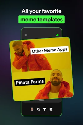 Experience the ultimate meme maker magic, now on Android with Piñata Farms! Our platform, revered as the premier meme maker, has taken IG, Twitter, and Reddit by storm. Now, we empower you to be a meme creator, crafting memes that trend instantly.