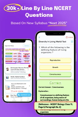 Every line of the NCERT Book is converted into a NEET MCQ app chapter-wise for Neet Biology, Neet Chemistry & Neet Physics. It is also a NEET test series app that provides papers like NEET exam question papers. It is an “All In One for NEET Preparation 2025 App” from practice to test the performance.