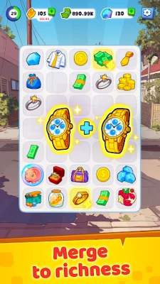 In "Merge Millionaire" game, the main goal is to combine identical items to enhance your level. Each merge brings you closer to completing core tasks that are integral to progressing in the game. Achieve the required item levels to unlock currency, propelling your rich story and unlocking new chapters in your character's life.