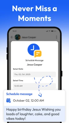 ⏰ Schedule Messages – Send greetings, reminders, and updates at the perfect time.