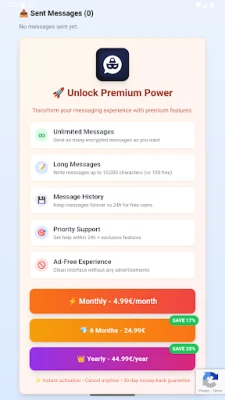 Messenger Incognito is a lightweight, privacy-focused messaging app that lets you send encrypted messages without saving any history. All messages are deleted automatically after being read or after a short time.