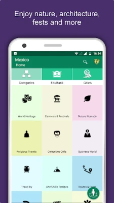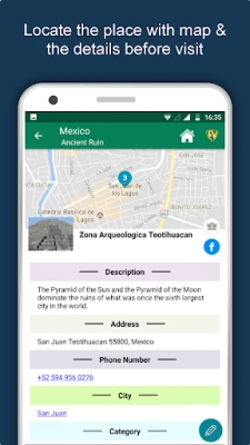 Apart from this, Mexico Travel & Explore guides you Why, When and How to visit various places in Mexico with precise location on the detailed Map. There are three ways to explore this app - Category view, City view and EduBank favorite places view. Pin your destinations and get the routes on the Map. Not only this, you can see exactly how the places look like with Street View integrated in this app. The app also has a feature to Rate and write Review/Experience regarding entity(s) through Login. Your Travel experience and rating will help the user community.