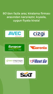 Garenta, Sixt, Europcar, Carvento, Green Motion, Avec, Rent Go, Avis, Wish, Cizgi, Filo, Novacar, Assist Car Rental, Otocar, 724 Rent, Ayes, Circular ve daha birçok güvenilir araç kiralama firmasını karşılaştırın, kıyaslayın, en uygun fiyata kiralayın.