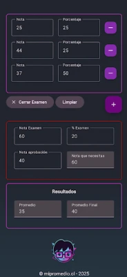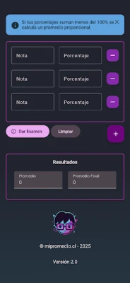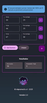 Mi promedio te permite calcular el promedio de tus notas donde cada una puede tener un porcentaje distinto.