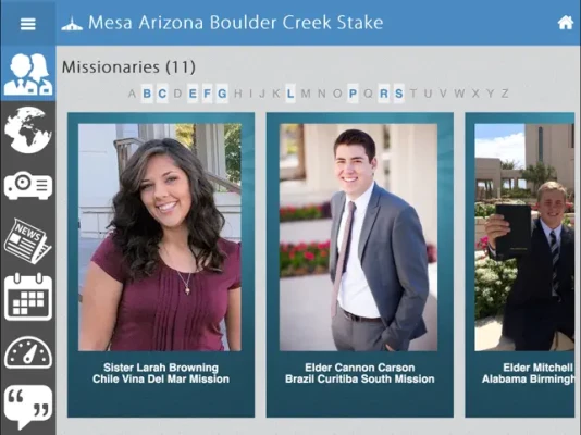 The "Missionary Display" is an interactive app that organizes and presents the digital pictures, maps, stories, and experiences of LDS missionaries serving around the world and highlights their missionary service.