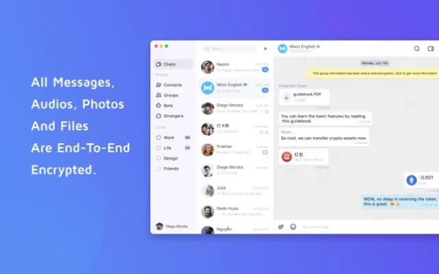 Mixin is a messenger with end-to-end encryption built on the Signal protocol.