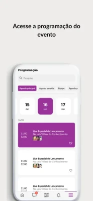 Com o aplicativo Mobiliza 2023, você tem acesso a uma rede social exclusiva, pode fazer novos contatos, enviar perguntas aos palestrantes, trocar mensagens com outros participantes, enfim, interagir com a comunidade. Além disso, você pode consultar a programação, avaliar conteúdos, dar feedback e responder quizzes. Utilize o APP e aproveite ao máximo os recursos.