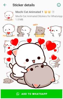 Beautiful sets of animated Mochi Cat stickers WhatsApp: cat love, sweet kittens and cute cats, dating and kissing, naughty kittens, sleeping kittens, funny cat emojis and many other beautiful stickers.
