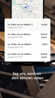wo du abgeholt wirst und wann du voraussichtlich ankommst. So ersparst du