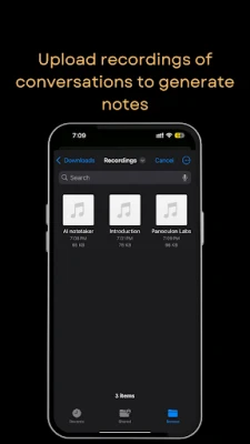 * Record or Upload Audio: Record meetings directly in the app or upload pre-recorded audio for transcription.