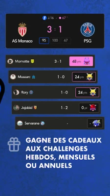 Gagne des places de match, ballons et maillots officiels si tu cartonnes dans les challenges spéciaux.