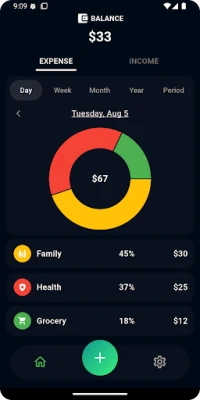 Add expenses or income in seconds. The streamlined interface lets you record your finances on the go, without wasting time.