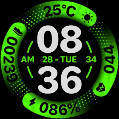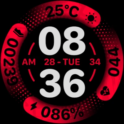 This application requires WEAR OS device to operate properly. Watch face with digital time, date, battery level, heart rate, step count, weather info and color options.