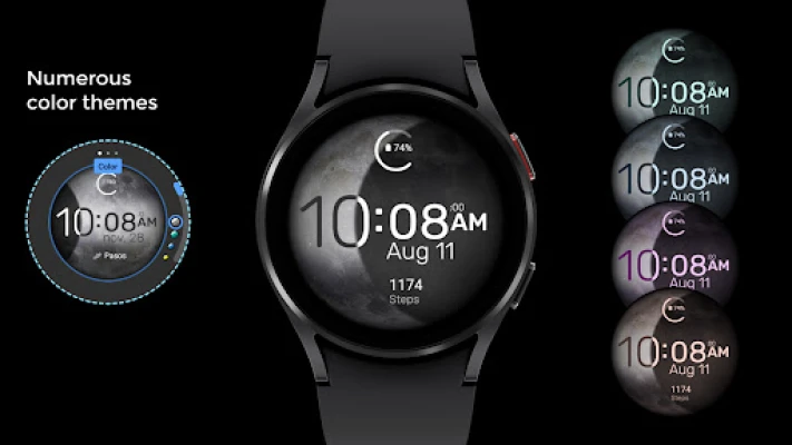 There are also color themes and an "Always on Display" mode. The background rotates every second and has a complication that can be customized.