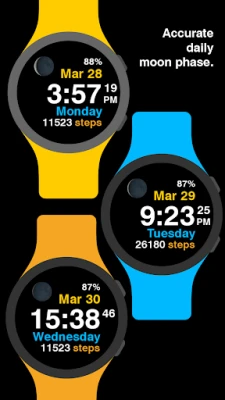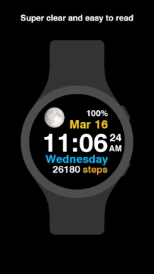 This is a bold and clear watch face for Wear OS smartwatches that is very easy to read with just a quick glance at the watch face.