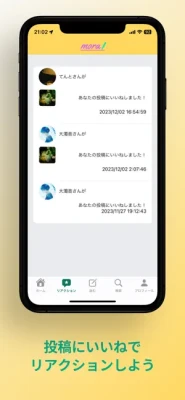 - 他のユーザーの短歌にリアクションをつけたり、自分へのリアクションを確認することができます。
