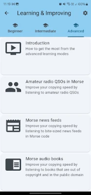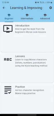 Beginner to Advanced Learning: The app provides progressive lessons for every skill level. The beginner's training course specifically uses the Koch method to teach the International Morse Code alphabet, numbers, punctuation, and common prosigns. With consistent practice using Morse Maven, beginners can learn to recognise all characters in about 1-2 months, and the app guides you through developing speed and fluency.