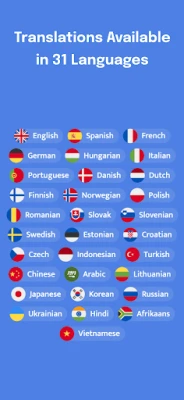 Master 31 languages effortlessly with 3k essential words, over 100k example sentences, hands-free learning, quizzes, spaced repetition, sync, dictionary, and notifications