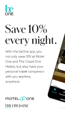 Switch on beOne! With the beOne App, you have over 100 Motel One and The Cloud One hotels worldwide right in your pocket. As part of our free beOne membership programme, the app offers you a personal travel companion with numerous exclusive benefits: