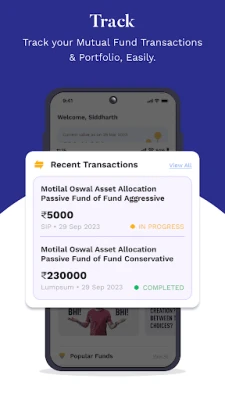 Tracking your investments has never been simpler. Motilal Oswal AMC app provides you with a detailed view of your portfolio, offering insights into your total investment, current portfolio value, and the category split between equity, debt funds and more. Easily monitor your returns and fund performance, all in one place. Additionally, enjoy hassle-free access to essential services like transaction e-statements, capital gain statements, and SIP transaction history.