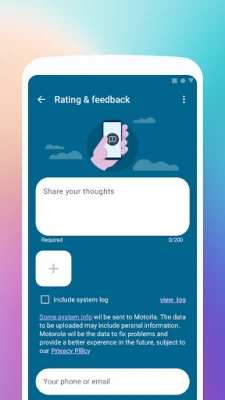 Your feedback helps us enhance your Motorola experience! You can send screenshots, videos, and system logs to better describe your concerns.