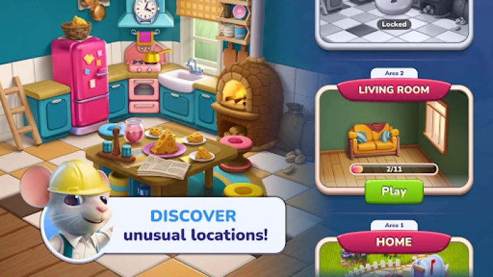As you progress through the game, you'll earn stars that can be used to construct and adorn your little mouse's cozy abode. Take on the role of an interior decorator and turn your mouse's house into a charming masterpiece. Unlock various rooms within the house, each with its unique theme, and embark on renovating and embellishing them to perfection.