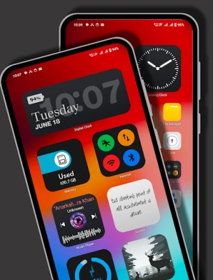 Calender Widget, World Clock widget, Analog Clock widget, Digital Clock widget, Battery Widget, Weather widget, Network info widget, Quotes widget, Device Info Widget, Search Widget, RAM widget, Memory Widget, PhotMuse Widget.