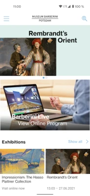 To use the Barberini App, make sure you have an internet connection. Free WiFi is available in the Museum Barberini. We recommend activating Location Services and Bluetooth to discover all the information and features of the app.
