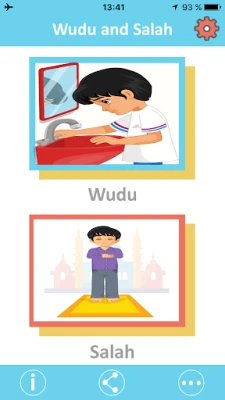Muslim kids guide : Salah [Prayer] & Wudu [ablution] is an Islamic application for children to learn how to perform Salah [Prayer] and Wudu [ablution]. The app has very nice graphics.