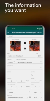 Videolar (örn .: nasıl oynanır), web sitesi url'leri (örn .: alternatif oyun kuralları), resimler (örn .: resimleriniz), notlarınız, oyun dili, etiketler, satın alma tarihi ve satın alma fiyatı ve daha fazlasını ekleyebilirsiniz.