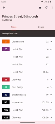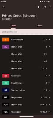 * View the next departures for each bus service at each stop serviced by Lothian Buses and estimated times for Edinburgh Trams.