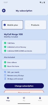 - Track your usage and balance - Buy extra data and international minutes - Top up your balance when you need it - Easily activate top-up codes in the app - The app is available in Norwegian, English, Polish and Ukrainian